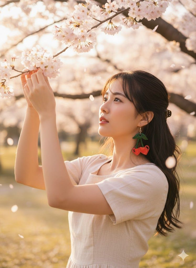 Le design cerise sur tige (x2) apporte une note joyeuse, rétro et printanière, idéale pour sublimer une tenue casual ou apporter une touche originale à un look plus habillé.