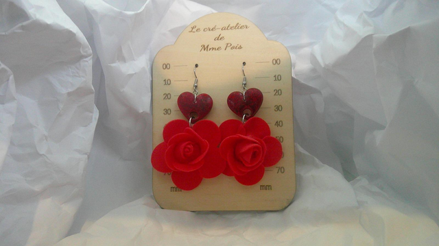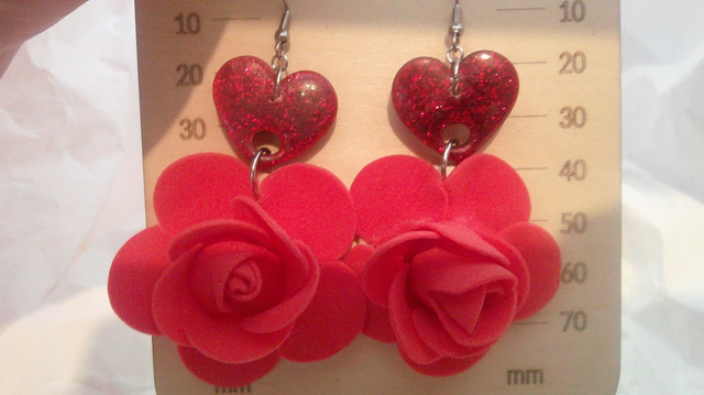 Boucles d’oreilles cœur pailleté avec fleurs en mousse – Pièce artisanale unique