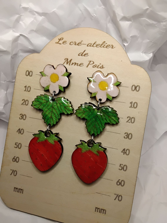 Boucles d’oreilles “Fraise des Jardins” – Création artisanale en bois peint à la main