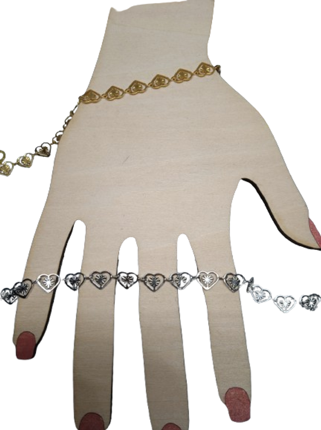 Ce bracelet en acier inoxydable, disponible en finition dorée ou argentée, présente des maillons élégants en forme de cœur qui symbolisent amour et raffinement.