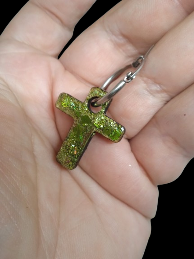 Ajoutez une touche céleste à vos créations avec cette pampille croix vert émeraude à paillettes, symbole d’espoir, de foi et de style affirmé. Fabriquée en bois peint à la main et incrustée de résine scintillante, chaque croix est une pièce unique, prête à illuminer vos créoles ou colliers.