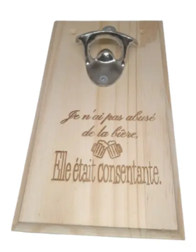 Pratique et esthétique, ce décapsuleur mural en bois de pin peut être personnalisé avec un texte unique. Disponible avec des thèmes festifs (Sucre d’Orge, Cadeau, Rennes).
