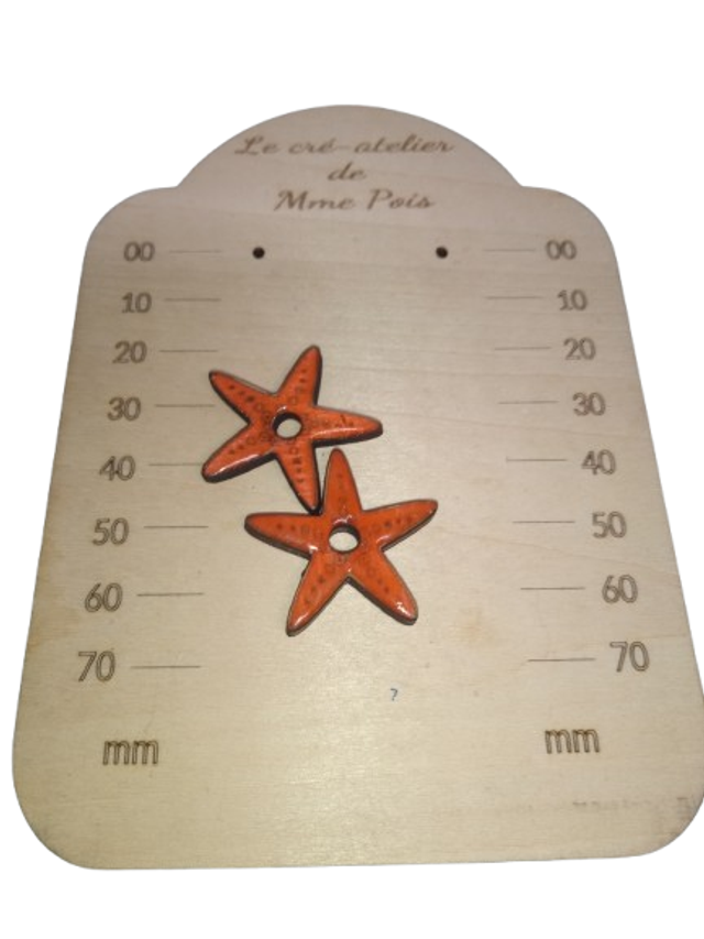 Caractéristiques : ✔ Matériau : bois & résine ✔ Couleur : orange corail ✔ Motif : étoile de mer ✔ Fabrication artisanale en Sarthe ✔ Vendue seule, possibilité d’ajouter des créoles