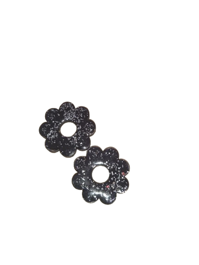 Caractéristiques : ✔ Matériau : bois & résine ✔ Couleur : noir profond avec paillettes argent et rouge ✔ Fabrication artisanale en Sarthe ✔ Vendues seules, possibilité d’ajouter des créoles