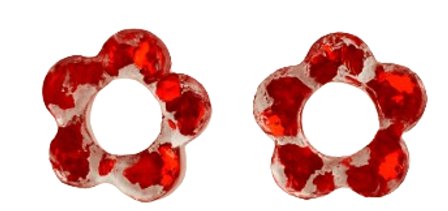 🔺 Matière : résine transparente, paillettes rouges et blanches 🔺 Couleur : rouge éclatant sur fond cristallin 🔺 Fabrication : fait main, chaque pièce est unique