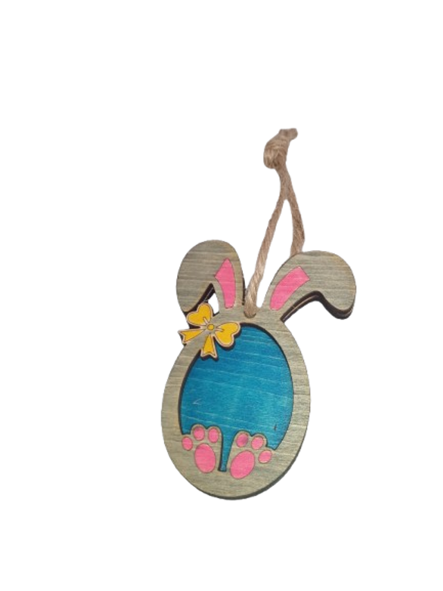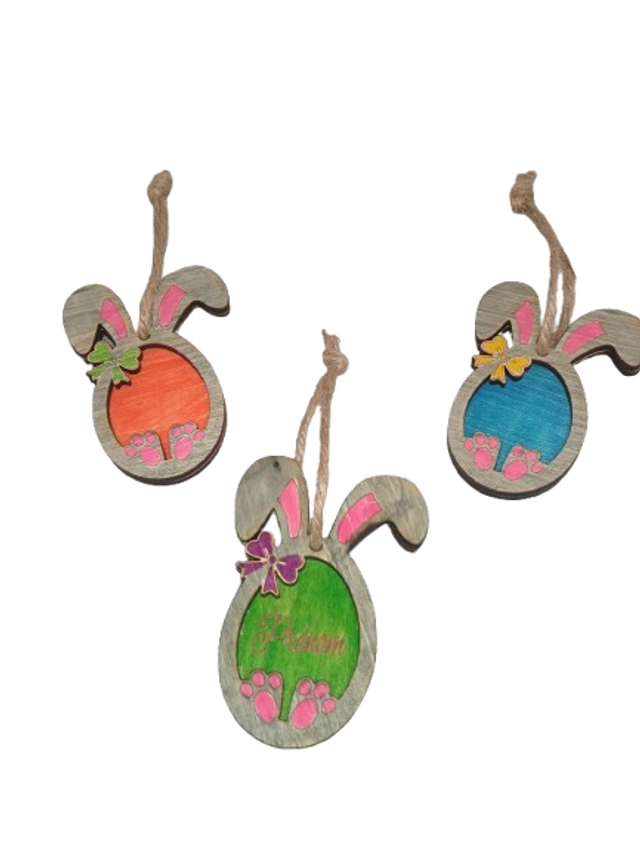 Petit Lapin Œuf en Bois à Personnaliser – Couleurs Rose, Bleu et Vert, Création Artisanale Sarthe